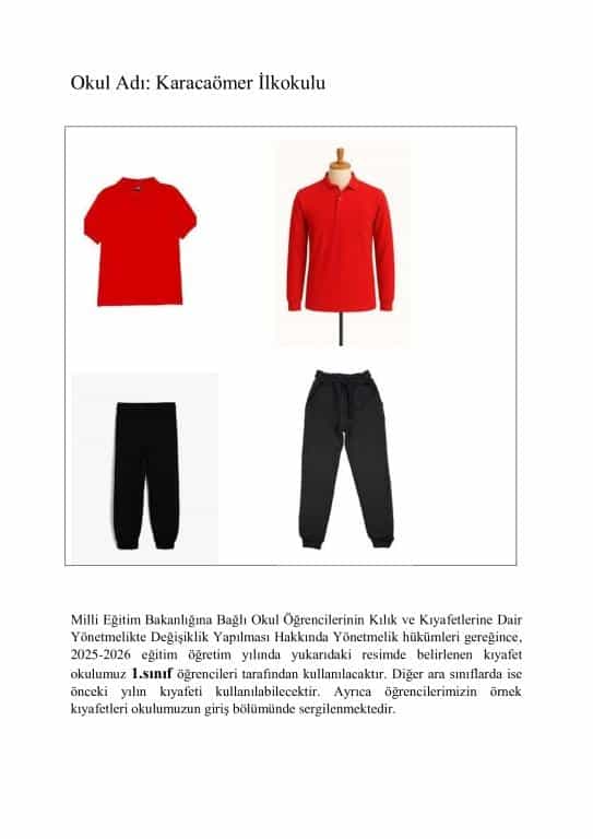 KARACAÖMER İLKOKULU 2025-2026 OKUL KIYAFETİMİZ